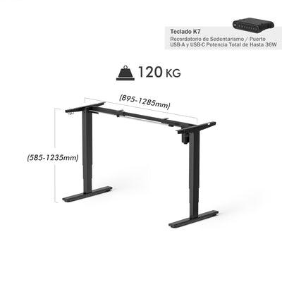 Escritorio de pie o sentado Brasa con cajón para teclado